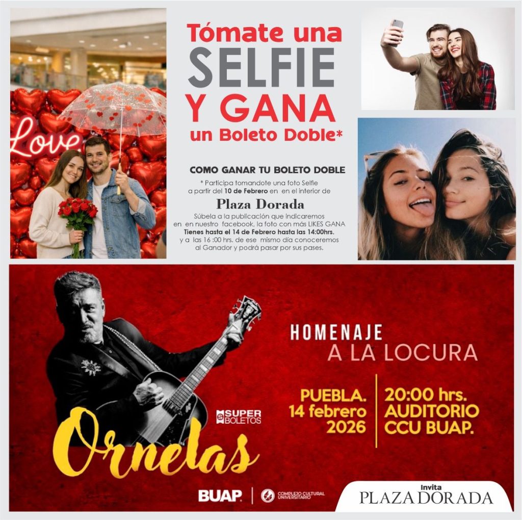 Se el ganador de un pase doble para el concierto de Ornelas en Puebla para este 14 de Febrero.